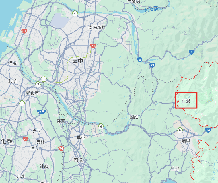 仁愛郷の場所はココ↓(台中より東に位置しています)