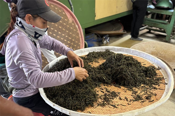 4.発酵しすぎないように加熱したら水分を飛ばして茶葉を選別します。